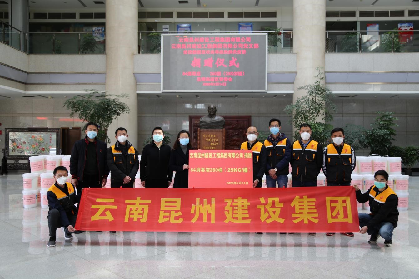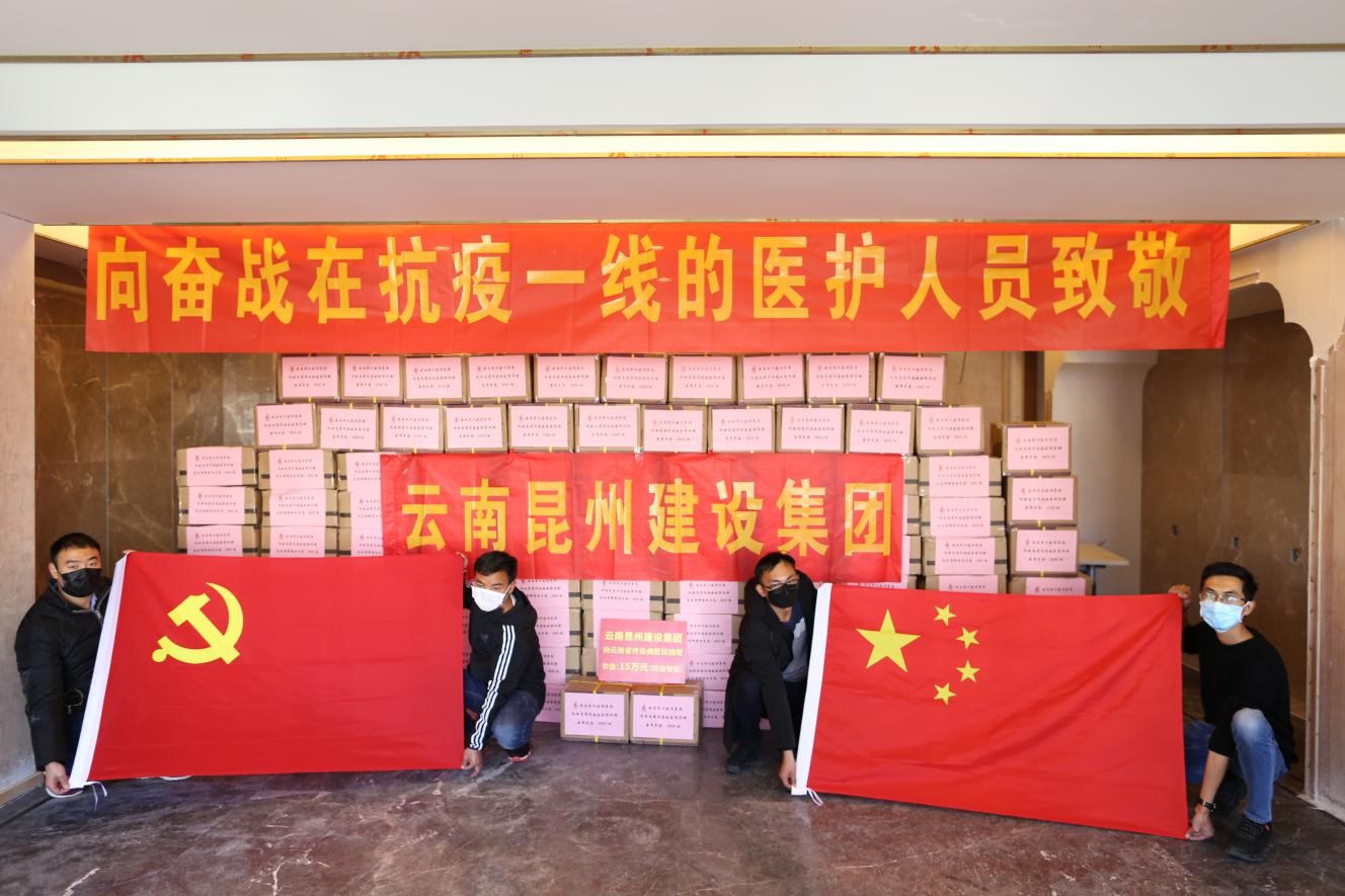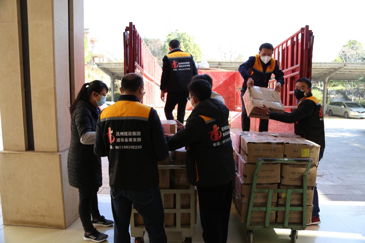 2月14日下午2:00,昆州集團員工代表出發,向高新區疫情防控指揮部運送捐贈物資。