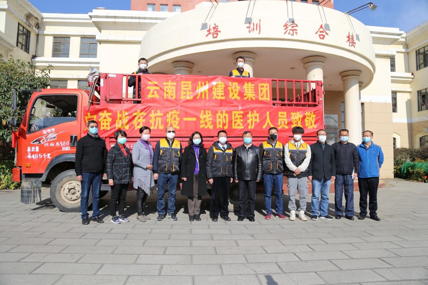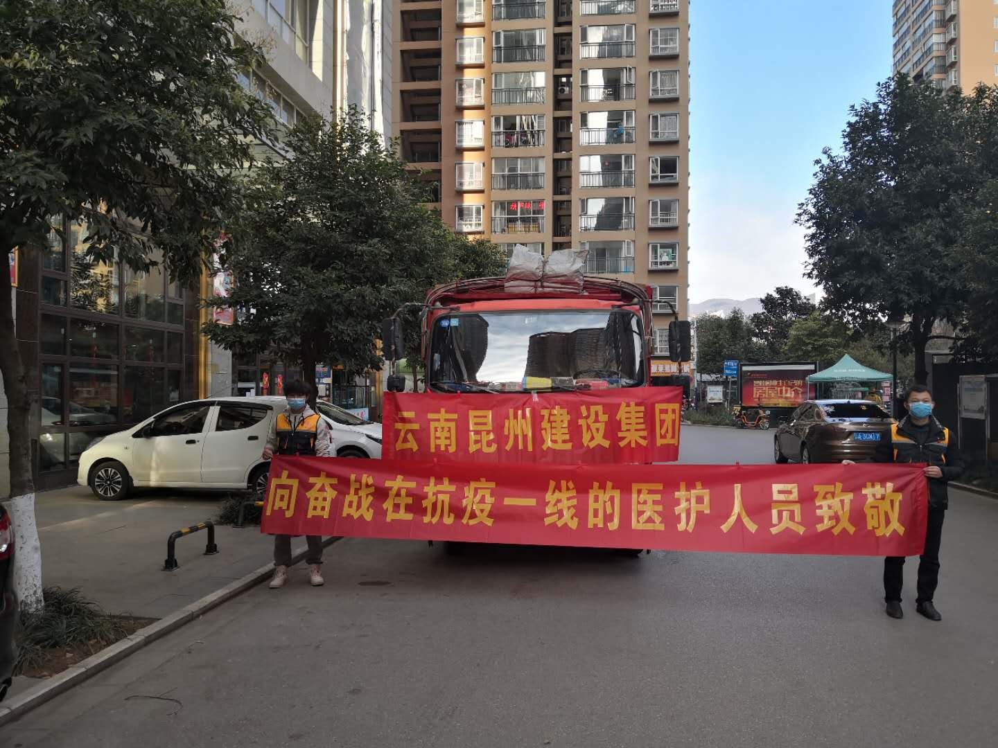 2月14日上午9:30,昆州集團員工代表出發,向云南省傳染病醫院運送物資。