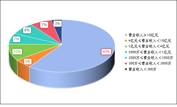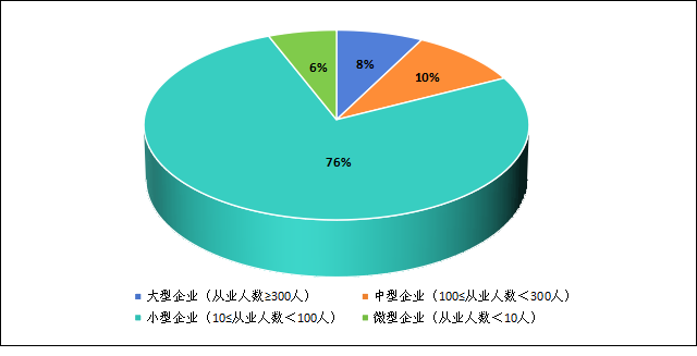 根據國家統計局《統計上大中小微企業劃分辦法》,以企業從業人員數量劃分環保產業企業規模,本次調查統計不同企業占比分別為:大型企業占比8%、中型企業占比10%、小型企業占比76%和微型企業占比6%,見圖1。我省環保產業企業分布呈現以中小企業為主的行業形態。