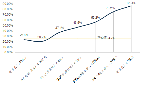 圖 3 列入統計企業不同營業收入企業的從業人員占比情況