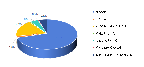 列入統計范圍環保企業主要分布于水污染防治、大氣污染防治等七個細分領域。以水污染防治為主,見圖7,該領域企業數量占比70.5%,貢獻八成以上行業營業收入以及七成以上的環保業務收入。