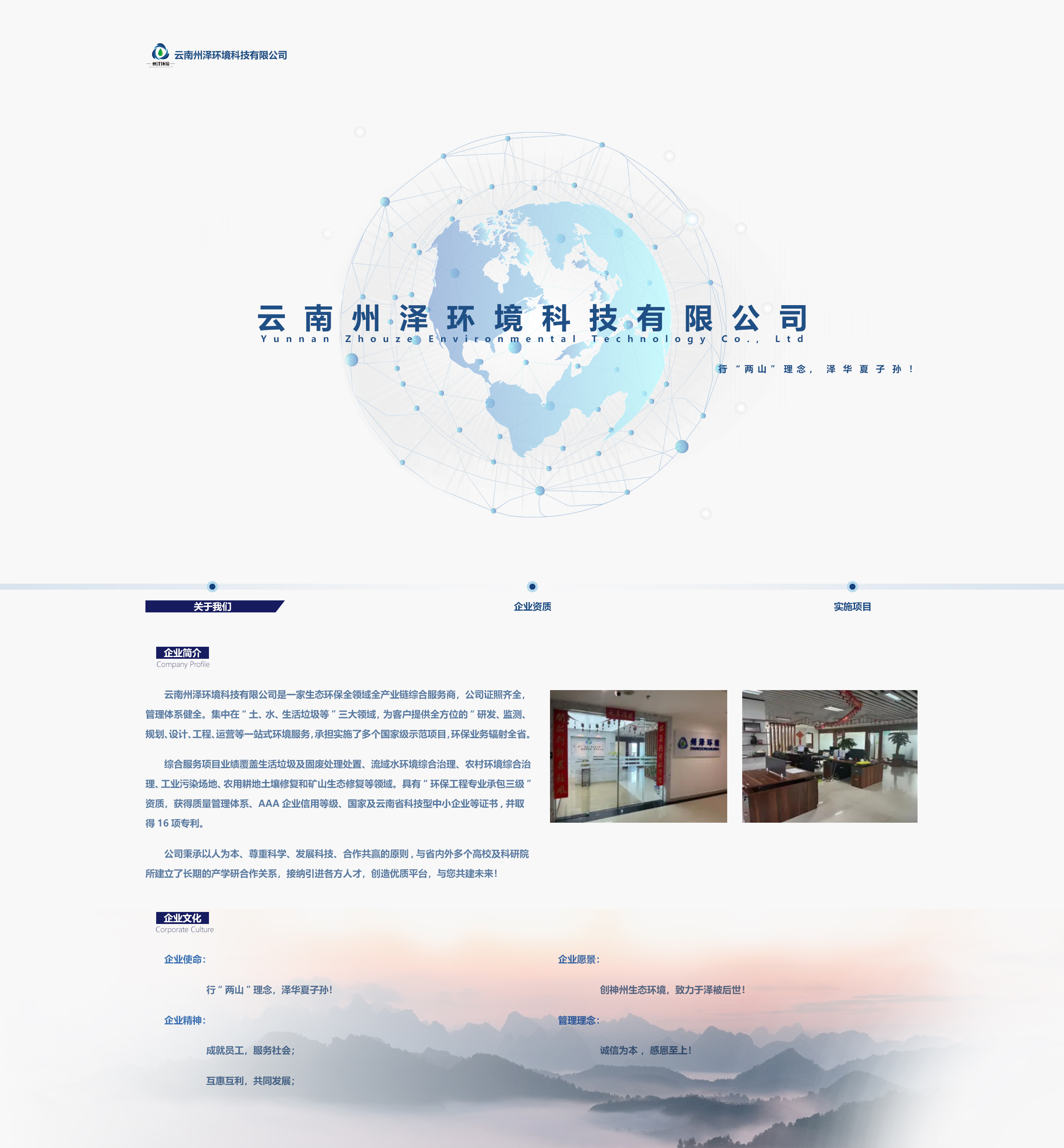 云南州澤環(huán)境科技有限公司是一家生態(tài)環(huán)保全領(lǐng)域全產(chǎn)業(yè)鏈綜合服務(wù)商,公司證照齊全,管理體系健全。集中在“土、水、生活垃圾等”三大領(lǐng)域,為客戶提供全方位的“研發(fā)、監(jiān)測、規(guī)劃、設(shè)計(jì)、工程、運(yùn)營等一站式環(huán)境服務(wù),承擔(dān)實(shí)施了多個國家級示范項(xiàng)目,環(huán)保業(yè)務(wù)輻射全省。