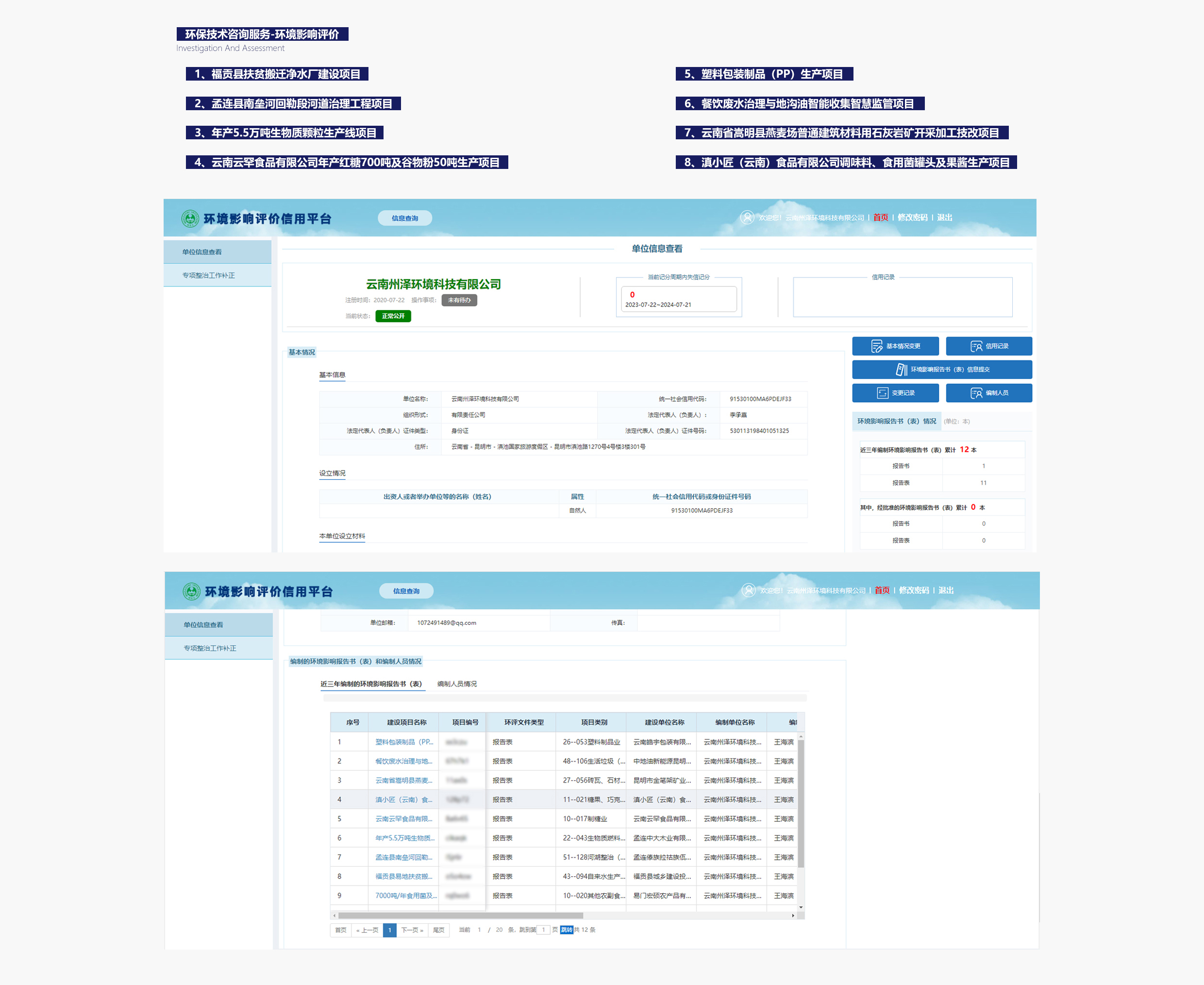 綜合服務項目業績覆蓋生活垃圾及固廢處理處置、流域水環境綜合治理、農村環境綜合治理、工業污染場地、農用耕地土壤修復和礦山生態修復等領域。具有“環保工程專業承包三級”資質,獲得質量管理體系、AAA企業信用等級、國家及云南省科技型中小企業等證書,并取得16項專利。