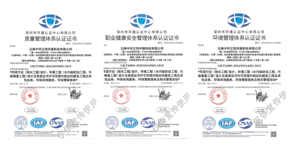 云南中環(huán)正浩環(huán)境科技有限公司成立于2016年12月09日,企業(yè)的經(jīng)營(yíng)范圍為:許可項(xiàng)目:地質(zhì)災(zāi)害治理工程施工;地質(zhì)災(zāi)害治理工程監(jiān)理;地質(zhì)災(zāi)害治理工程勘查;地質(zhì)災(zāi)害治理工程設(shè)計(jì);各類(lèi)工程建設(shè)活動(dòng);地質(zhì)災(zāi)害危險(xiǎn)性評(píng)估;建設(shè)工程勘察;建設(shè)工程設(shè)計(jì)。一般項(xiàng)目:環(huán)保咨詢服務(wù);生態(tài)資源監(jiān)測(cè);環(huán)境保護(hù)監(jiān)測(cè);固體廢物治理;地質(zhì)災(zāi)害治理服務(wù);土壤污染治理與修復(fù)服務(wù);土壤環(huán)境污染防治服務(wù);水污染治理;水環(huán)境污染防治服務(wù);大氣污染治理;大氣環(huán)境污染防治服務(wù);生態(tài)恢復(fù)及生態(tài)保護(hù)服務(wù);技術(shù)服務(wù)、技術(shù)開(kāi)發(fā)、技術(shù)咨詢、技術(shù)交流、技術(shù)轉(zhuǎn)讓、技術(shù)推廣;專業(yè)保潔、清洗、消毒服務(wù);環(huán)境保護(hù)專用設(shè)備銷(xiāo)售;環(huán)境監(jiān)測(cè)專用儀器儀表銷(xiāo)售;貨物進(jìn)出口;技術(shù)進(jìn)出口。持有住建部門(mén)頒發(fā)的市政行業(yè)專業(yè)乙級(jí)和環(huán)境工程專項(xiàng)乙級(jí)工程設(shè)計(jì)資質(zhì)證書(shū)、國(guó)家發(fā)改委備案的工程咨詢單位證書(shū)(備案編號(hào) 9153010MA6K8WRRXR-20)、環(huán)境保護(hù)污染治理資質(zhì)乙級(jí)證書(shū)、環(huán)保管家資質(zhì)證書(shū)、環(huán)境咨詢認(rèn)證證書(shū)等。