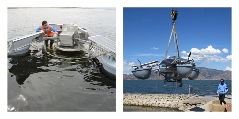 水上對太陽能驅動水生生態設備進行調試,以確保設備能夠正常運行