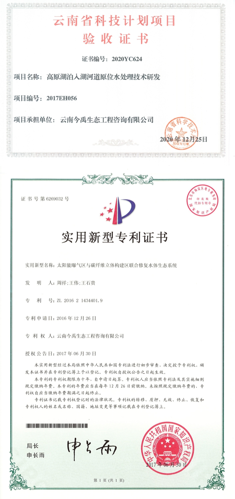 自2012年以來,先后承擔過科技部創新基金、云南省科技計劃、昆明市科技計劃、昆明市中小企業創新基金、中國雙創大賽獎勵資金項目,參與編寫行業標準《北方地區裸露邊坡植被恢復技術規范》(LY/T 2771-2016),主編著作《水土保持與生態環境建設》(科學出版社,ISBN 978-7-03-042149-4)等。擁有自主知識產權27項,其中:實用新型專利19項,外觀設計專利3項,軟件著作權5項。“滇池流域農田和山地面源污染防控關鍵技術體系及應用”榮獲云南省科技進步一等獎,“高原湖泊入湖河道原位水處理技術研發”榮獲第二屆云南省創新創業大賽暨第五屆中國創新創業大賽云南地區賽企業成長組二等獎。在“誠信、凝聚、創新、卓越”的戰略指導下,以優質的服務回報于社會。