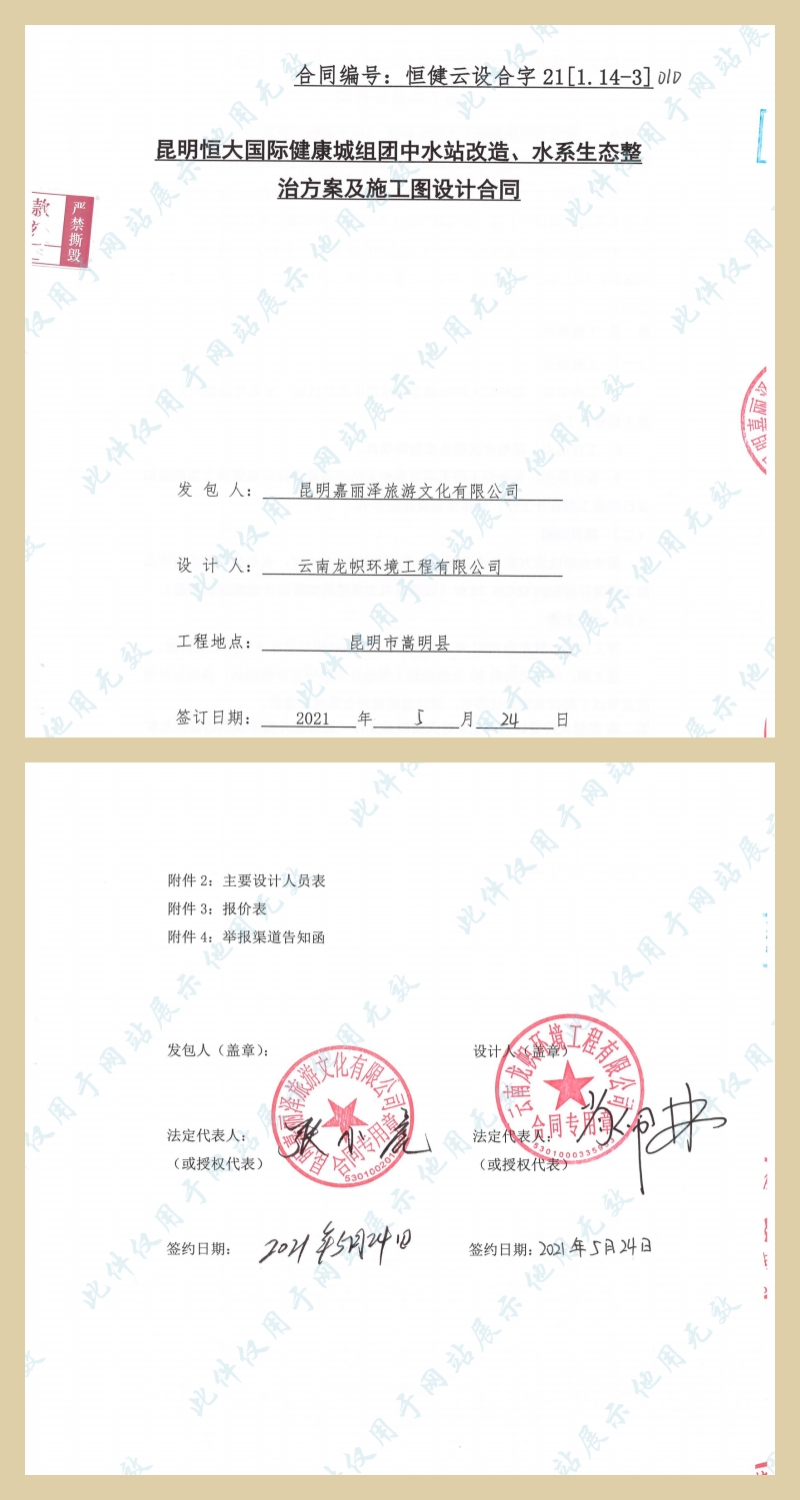 1、項目名稱:昆明恒大國際健康城組團中水站改造、水系生態整治設計工程