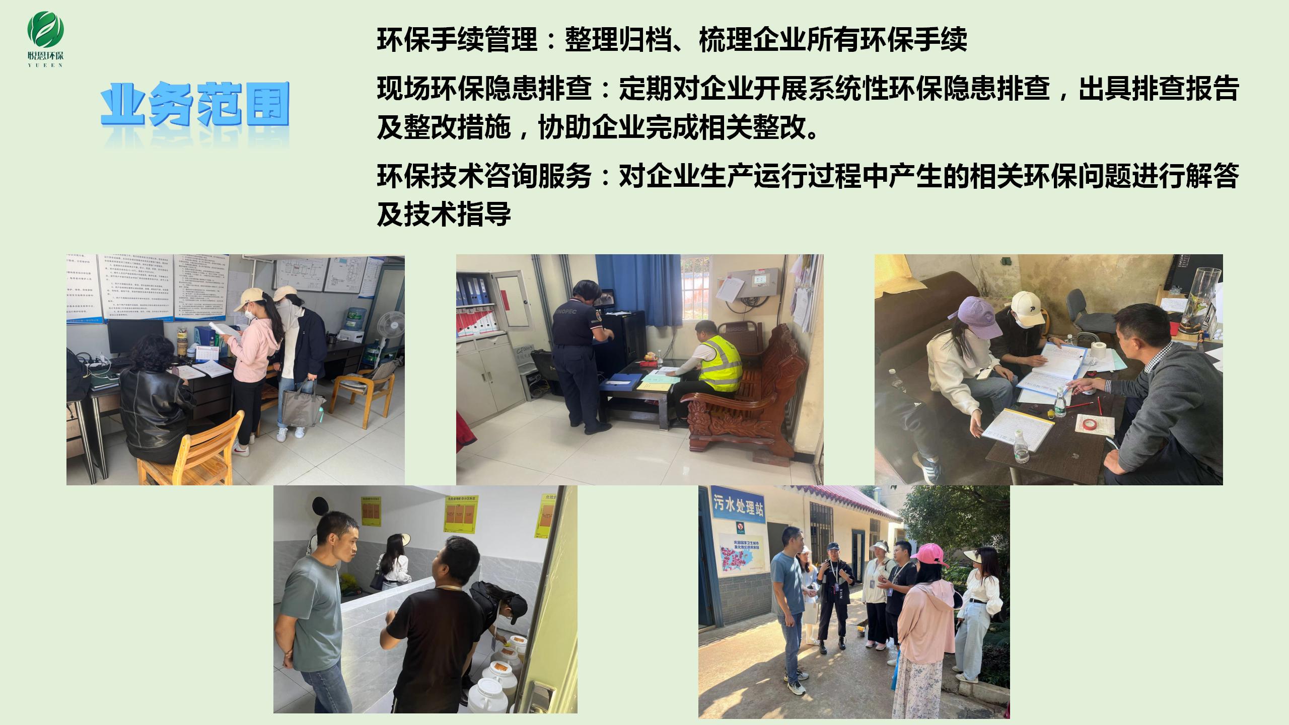 公司目前為100余家企業、醫院提供過環保管家服務,得到高度認可,云南悅恩環保技術咨詢有限公司真正的為企業解決問題、辦實事。公司業務包含環保管家一站式托管服務、環保文本編制服務、污水處理設施運維服務、污水處理設施新建及提升改造服務、環保相關檢測服務等。