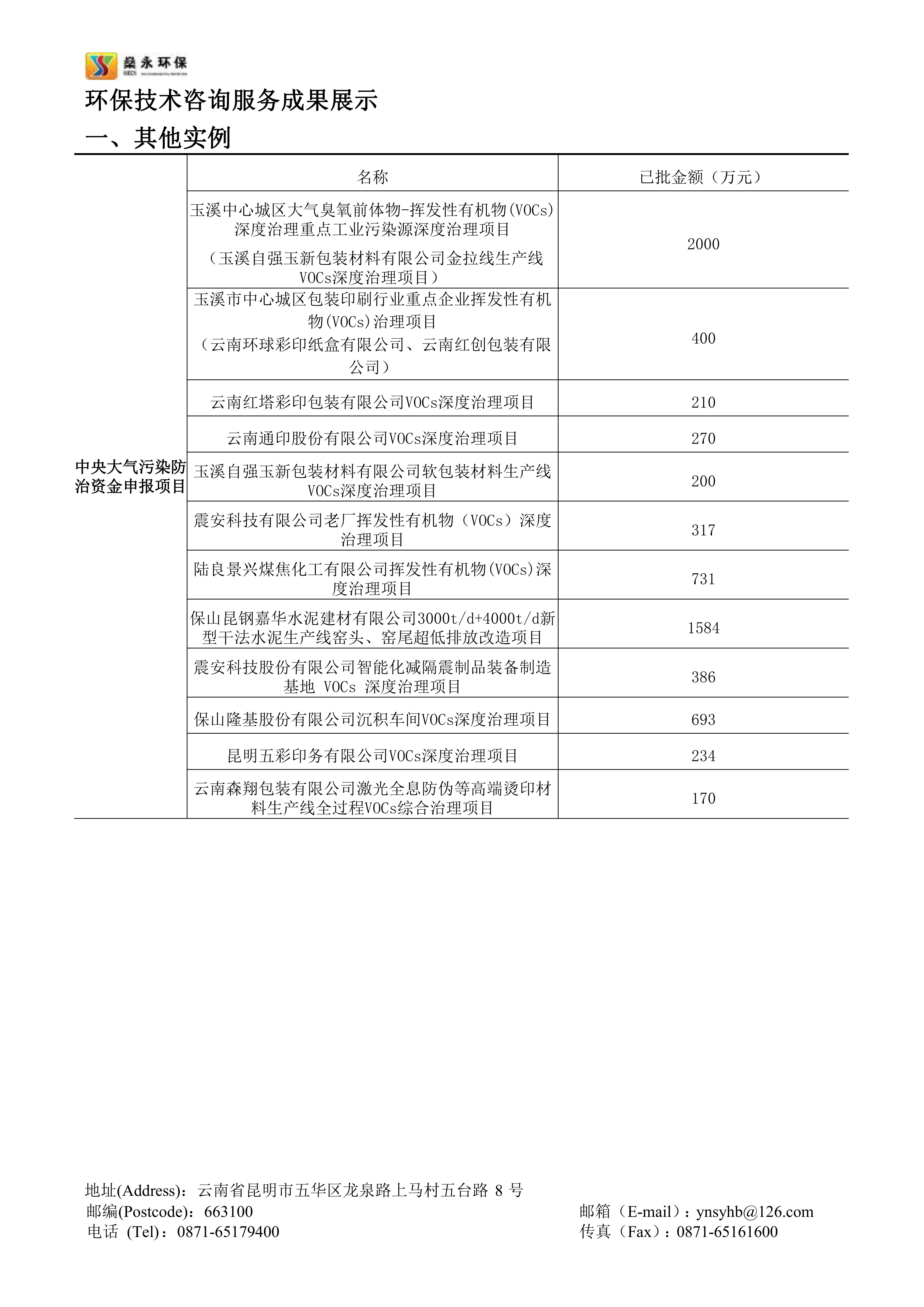截止2023年10月,公司幫助云南省多個行業企業成功申報的中央大氣污染防治資金已入庫項目共計20余個,申報項目已獲批總資金近一億余元。公司承接的云南省內中央大氣污染防治資金申報項目申報成功率高,成效顯著,服務細致高效,在云南省中央大氣污染防治資金申報領域具有豐富的經驗。